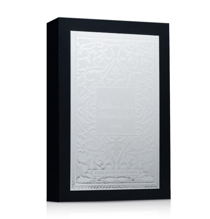 Fakher Lattafa highlights a fougere - woody union along with elegant notes of violet leaf, masculine nutmeg and bergamot. The heart accentuates clary sage, tart geranium and orange blossom finely spiced with coriander, while tonka, patchouli, vanilla and sandalwood linger in trail, which attract our attention with strong creamy shades.